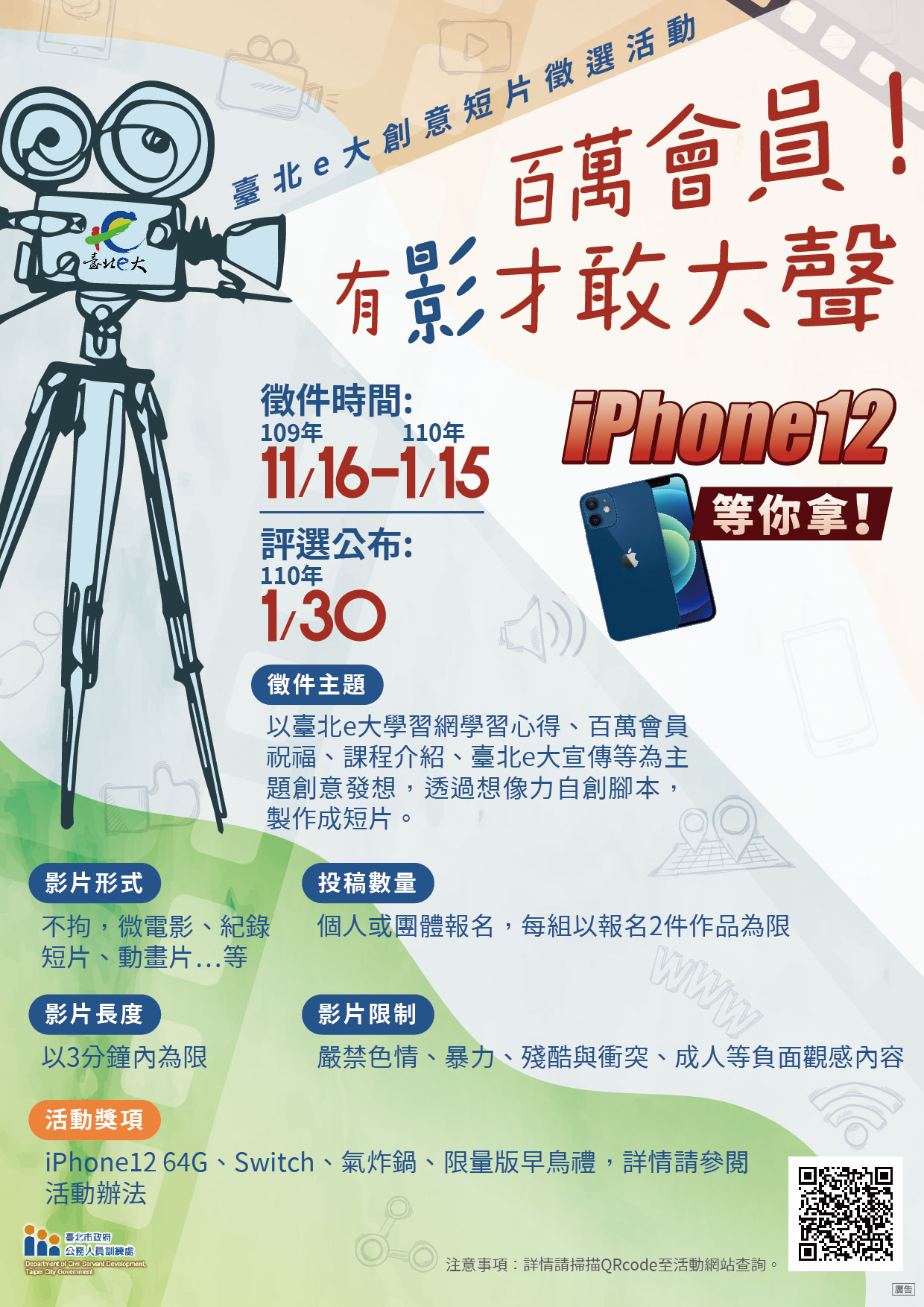 旨揭短片徵選活動,以擴大宣傳並鼓勵終身學習。