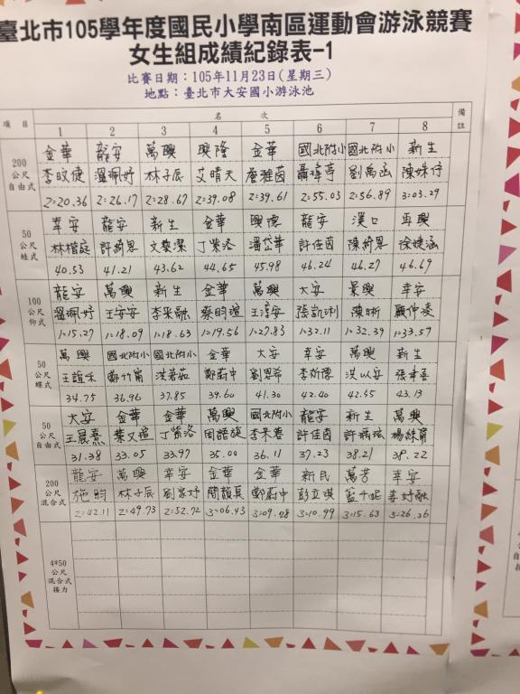 本校603班 藍千妮 參加臺北市南區運動會游泳比賽