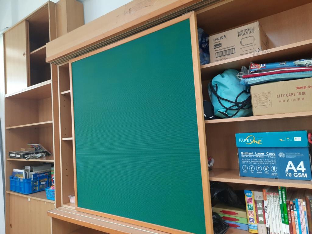 202門號 教室布告欄無法使用,門片卡死無法開合