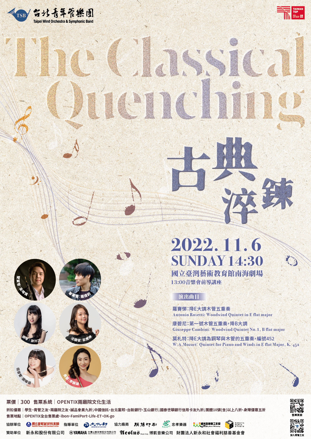 為使民眾了解古典時期音樂特色,本團特邀請國內優 秀木管與鋼琴新秀演奏家,精選多首古典時期優美曲目, 包含莫札特管樂與鋼琴五重奏及當代木管五重奏曲目。