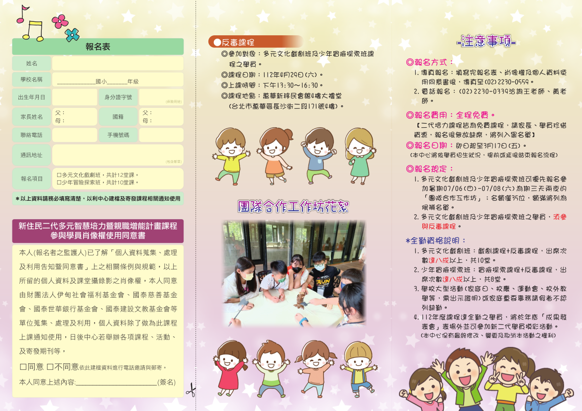 進溝通表達之能力,並協助新二代建立更具自我經驗價值