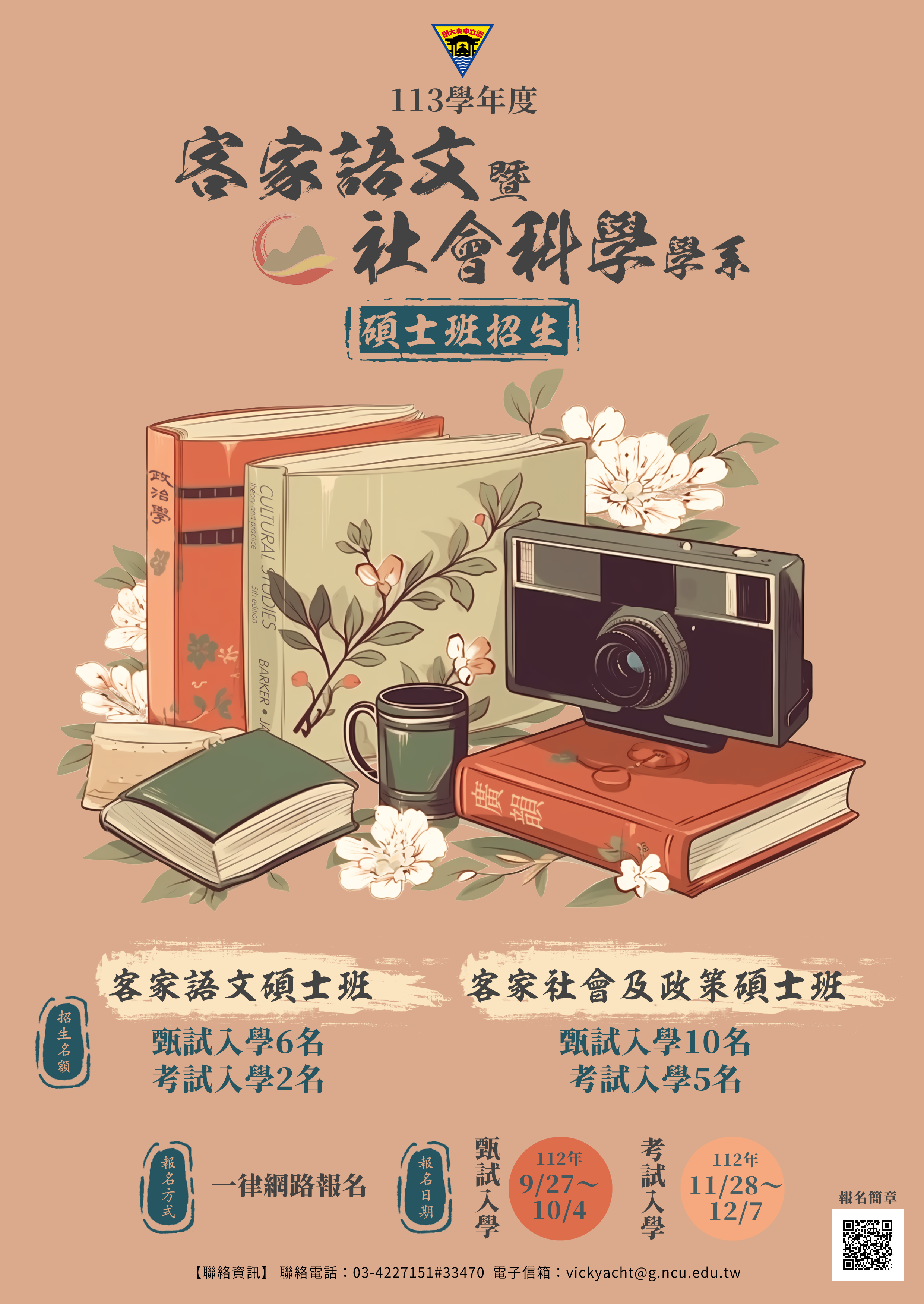 四、本校客家學院客家語文暨社會科學學系網址:http://hakkadepartment.ncu.edu.tw/home.jsp?lang=hk。歡迎來信洽詢聯絡人:羅小姐,E-mail: vickyacht@g.ncu.edu.tw。