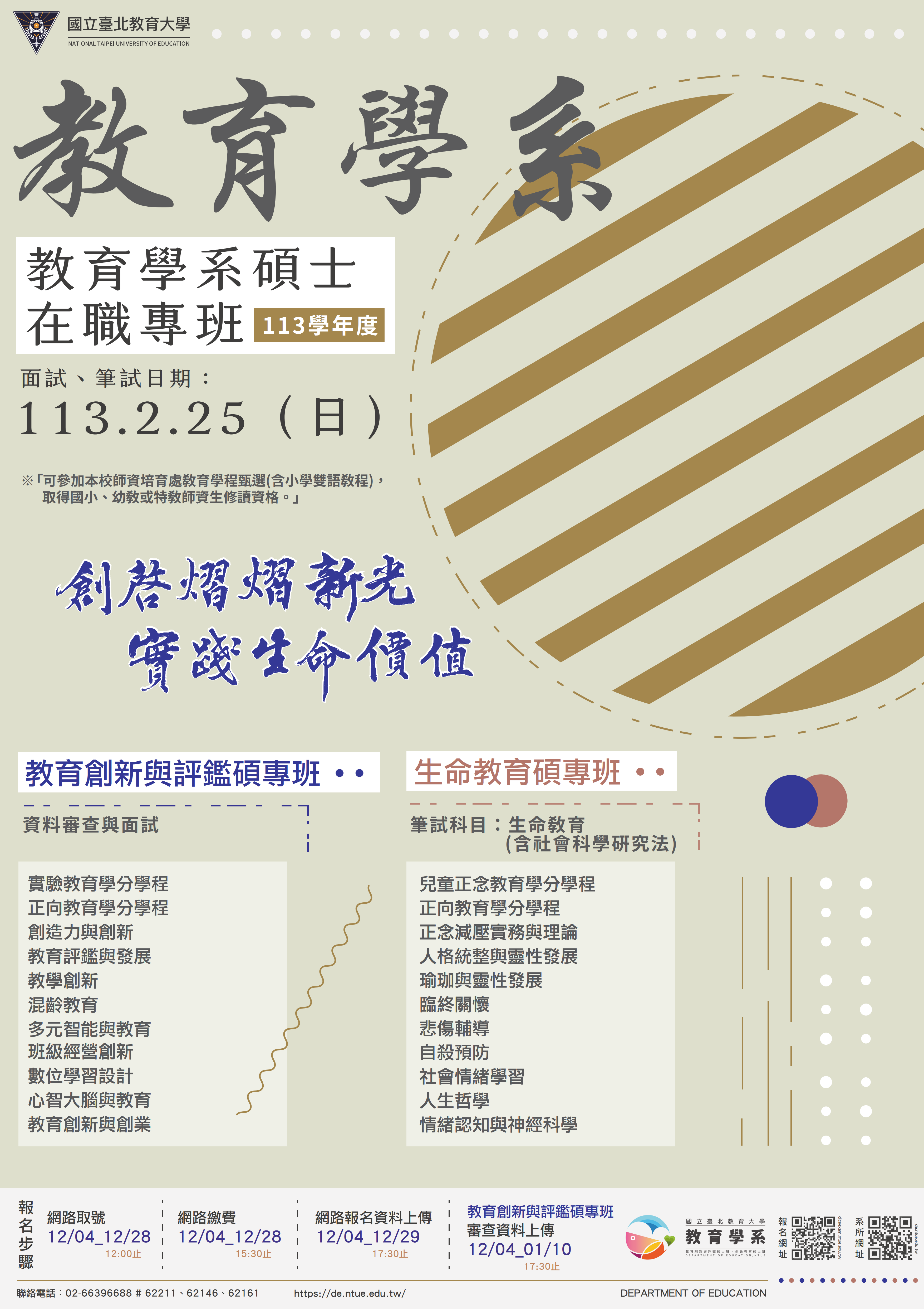 六、檢附教育學系113學年度碩士在職專班招生海報乙份。