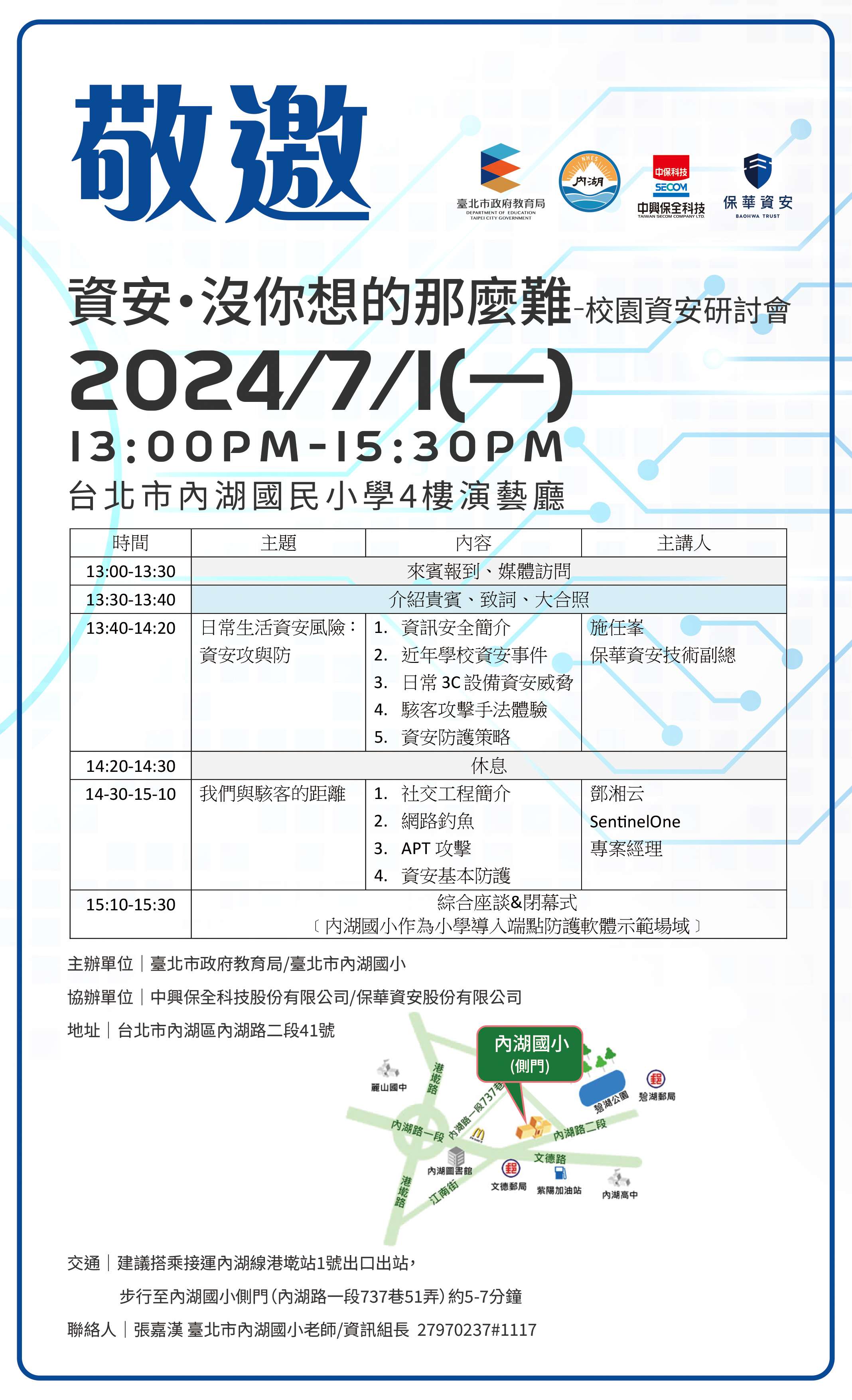 為臺北市內湖區內湖國民小學辦理「資安、沒你想的那麼難!校園資安研討會」一案