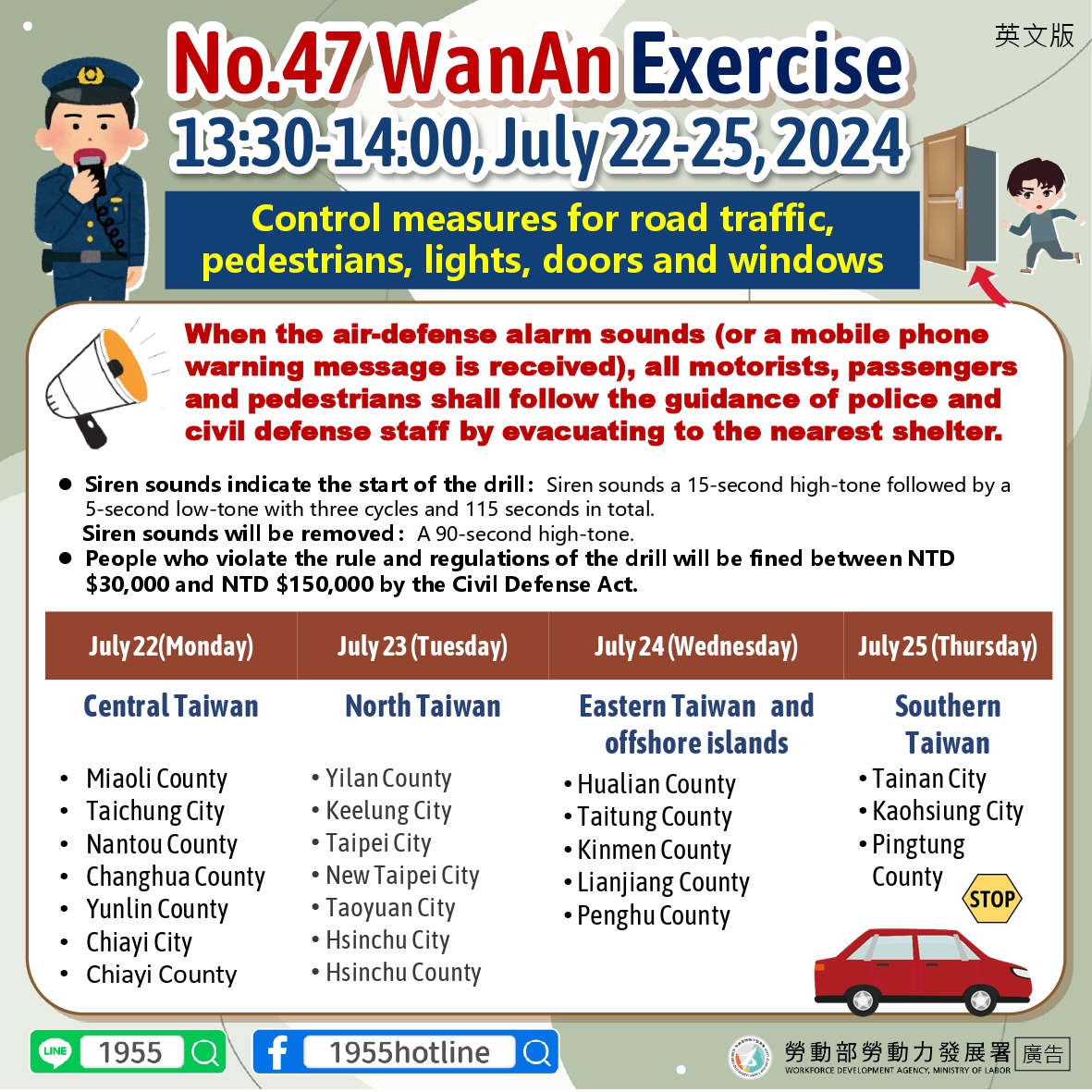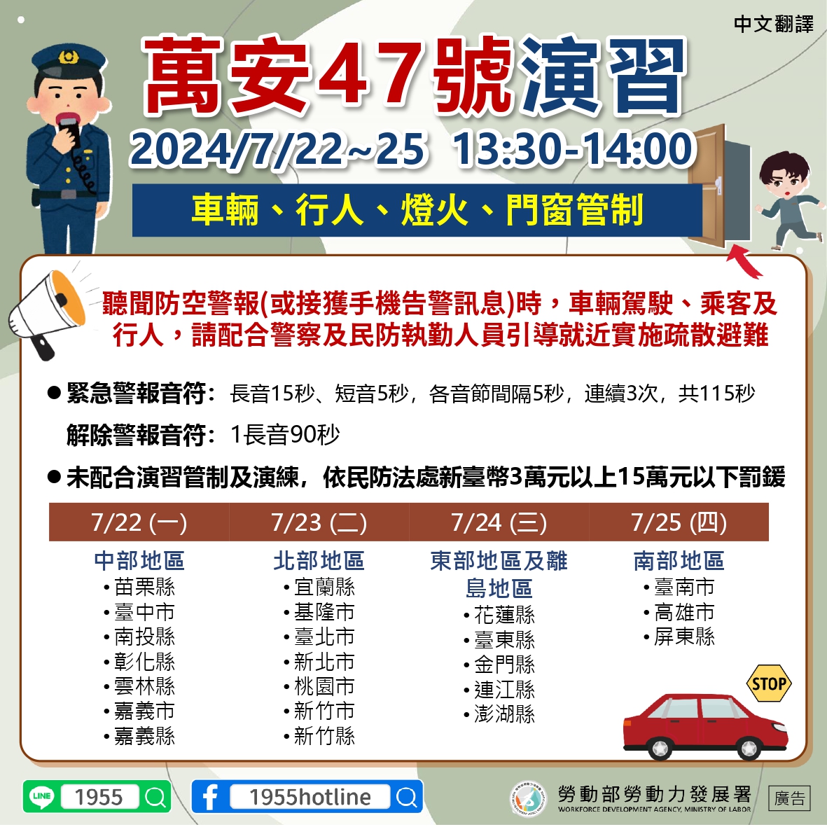 北部地區於2024/7/23 13:30-14:00進行萬安47號演習