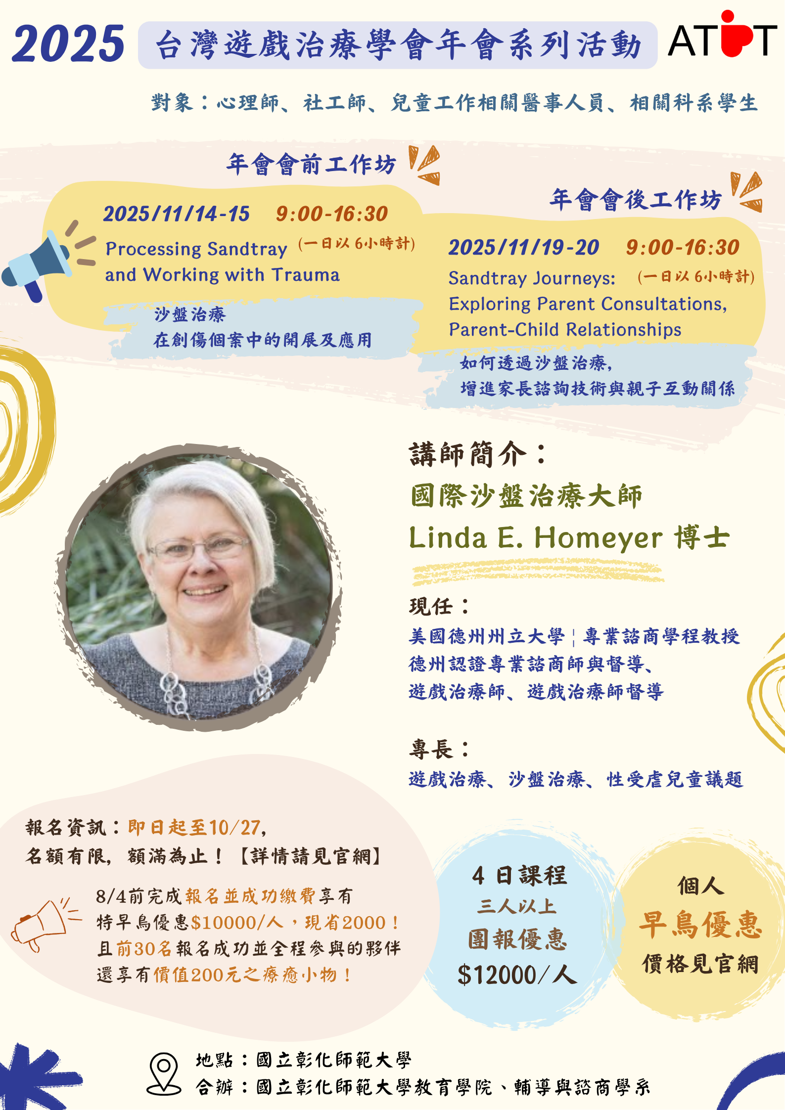 一、年會會前會後工作坊,課程時間及相關資訊。(一)會前工作坊:沙盤治療在創傷個案中的開展及應用