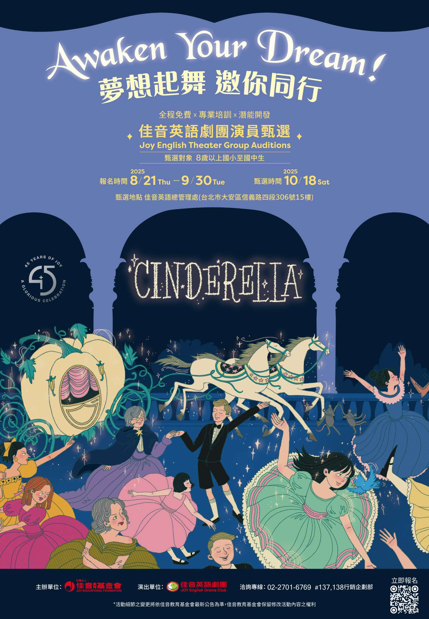 一、旨揭佳音教育基金會長期致力於親子教育及兒童福利,每年甄選優秀團員, 免費開課培訓、全國巡演之兒童英語戲劇。